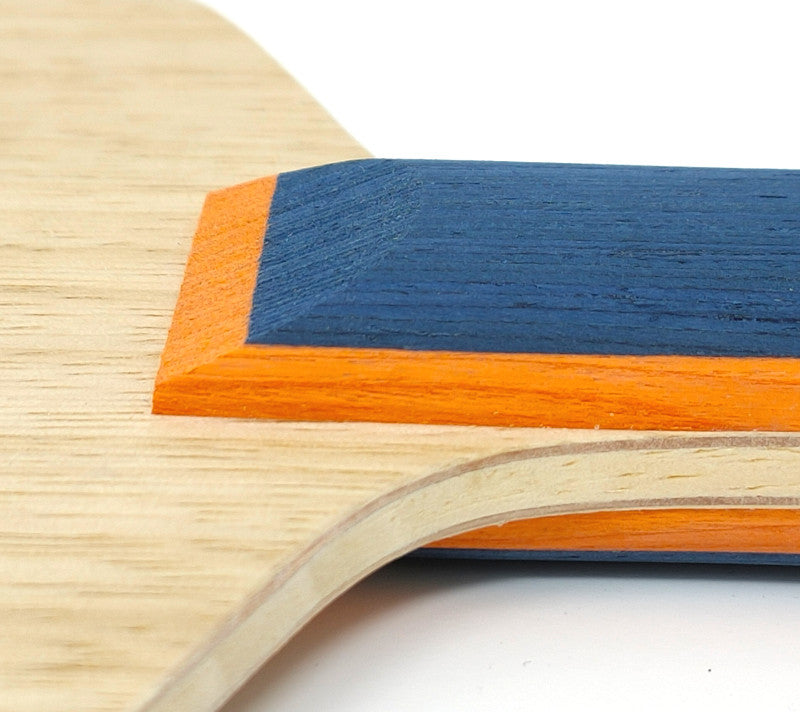 The new version of the RD1 is a particularly high-quality all-round frame whose veneer combination has changed considerably compared to the old RD1. The outer veneers are now made of Limba. The intermediate veneer is made of acacia and the core veneer is made of ayous. Overall, this veneer combination is slightly faster than the old RD1. This new version is therefore more of an All+ frame and even slightly faster than the Ultra Allround. The handle is also unchanged, but the wood in the new version is made of very high quality Italian painted ayous instead of Chinese painted poplar. This benefits both the appearance and the playing characteristics of the frame. This change is also the main reason for the higher price. This new version of the RD1 is also slightly stiffer than the old RD1 or the Ultra Allround. This results in better speed reserves for offensive hits. With the RD1, in combination with the right rubbers, all playing strategies from DEF to OFF are possible. Such a classic veneer combination also has the great advantage that it can be combined well with all types of rubber.
