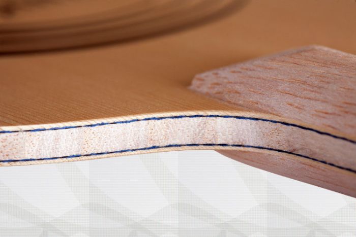 If you are looking for an extremely fast, but slightly offensive frame without a core layer from Balsa, you cannot ignore this frame. Despite the high tempo, it still has a soft and sensitive ball reception which is exceptional in this tempo class. The control value is also exceptionally high, because the Ultra Power is more elastic than comparable offensive frames without Balsa. The SpinLord Ultra Power is an absolute top class frame and for players who are looking for something extraordinary and can afford it. The outer layers are made from the best Hinoki in a thickness of 1.0 mm. The plastic Aramid is used under the top layers. Aramid is much higher quality than Carbon and provides a soft and sensitive ball acceptance. The core layer is made of 5.0 mm thick Kiri. This is how thick the core layers from Balsa are normally and this frame should weigh about 95 grams. The truck, the handle scales, and nothing else, are made of solid Balsa. This makes the low weight of this frame possible.